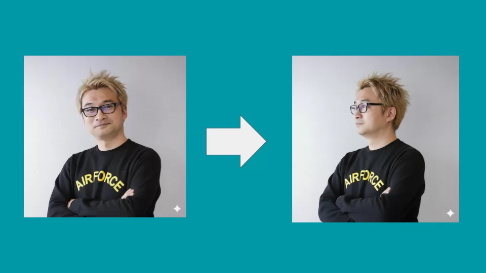 「この画像の人物を体ごと左に向けてほしい」と指示を出してみます。その結果がこちら。