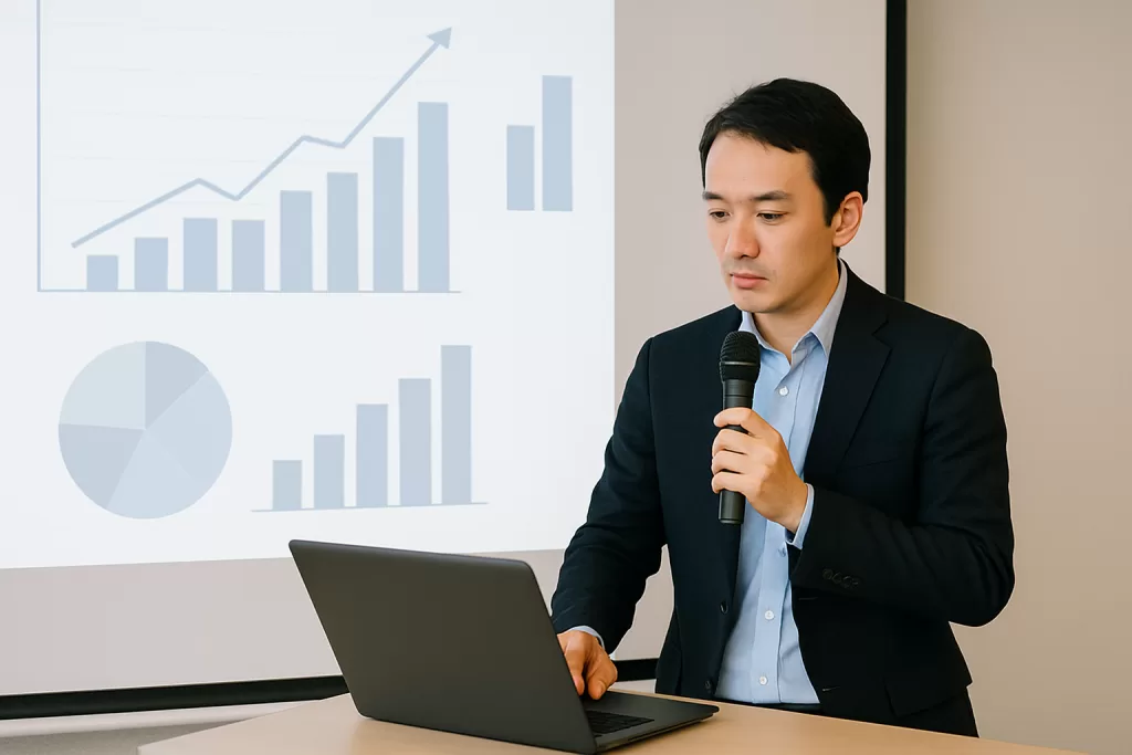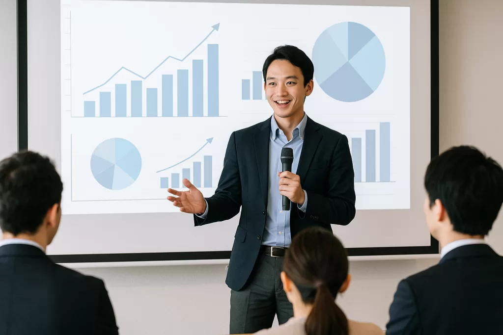 プレゼンは内容だけでなく目線が大切。画面ばかり見ず相手を見て話すことで反応を感じ取り、伝わるコミュニケーションにつながります。